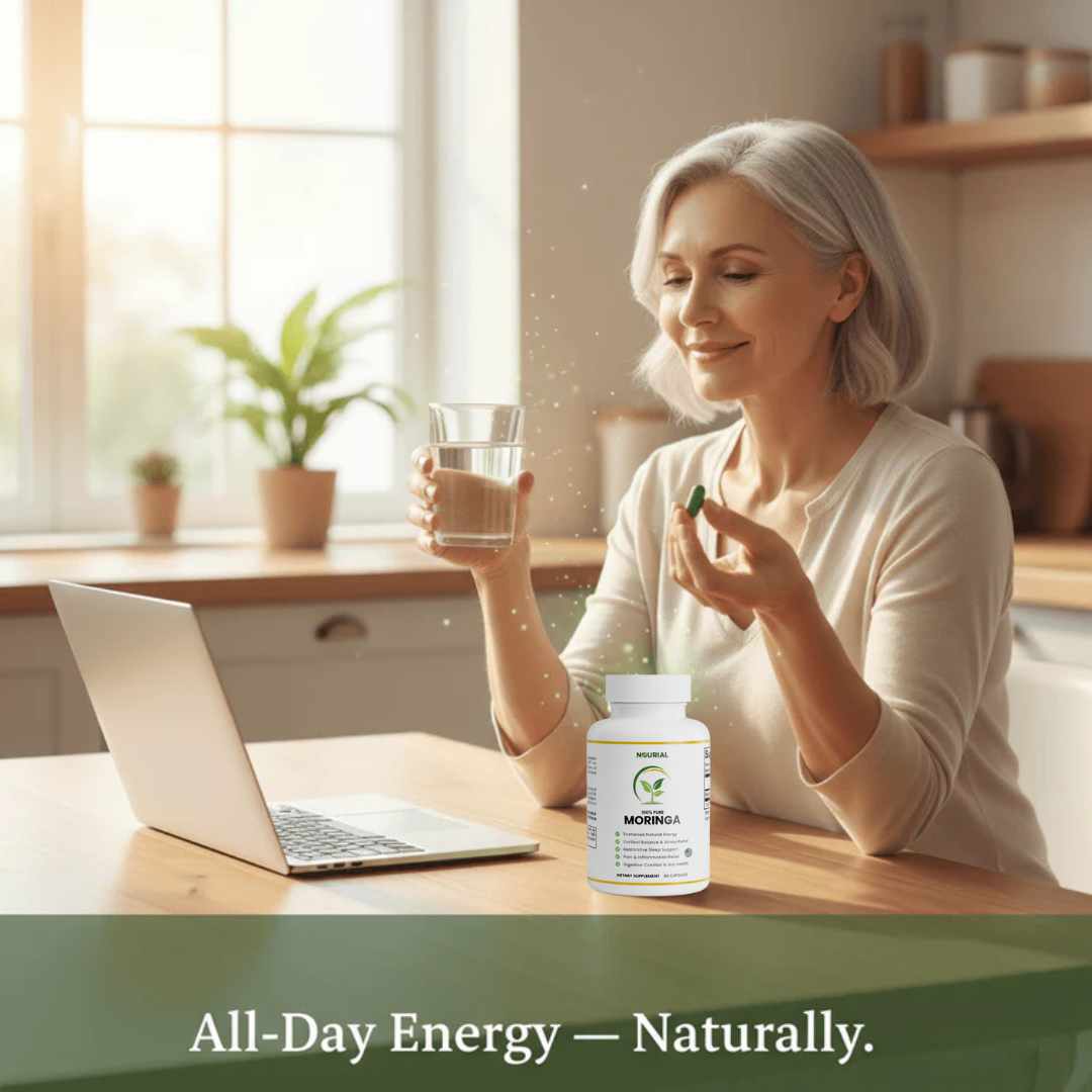 We get it — the wellness world is full of empty promises. What makes Nourial different is that it’s not a quick fix or caffeine-based stimulant. Our formula works by helping your body rebalance cortisol and reduce inflammation — two of the root causes of fatigue, brain fog, and sleep disruption. Moringa is a science-backed adaptogen, shown to naturally support energy, calm, and focus without the crash or jitters. Most people start feeling steady, clear energy within 2–4 weeks.