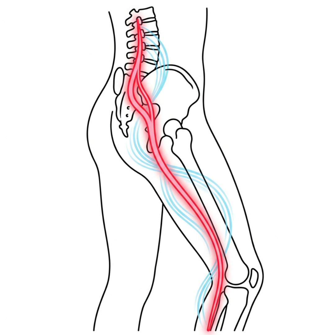 When you sleep on your side without support, gravity pulls your top leg down. Your pelvis rotates. Your spine twists. Your sciatic nerve gets compressed — for 6 to 8 hours every single night.