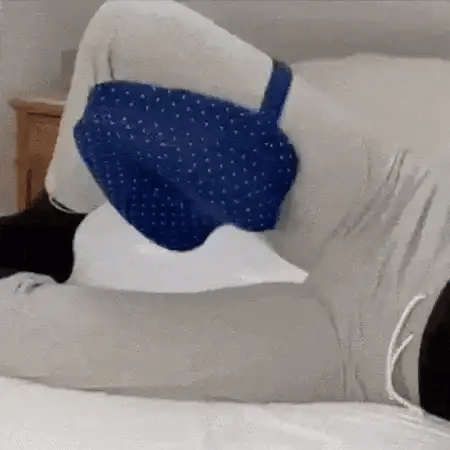 The Nourial Knee Pillow works by keeping your legs properly separated while you sleep, preventing your top leg from dropping and twisting your spine.